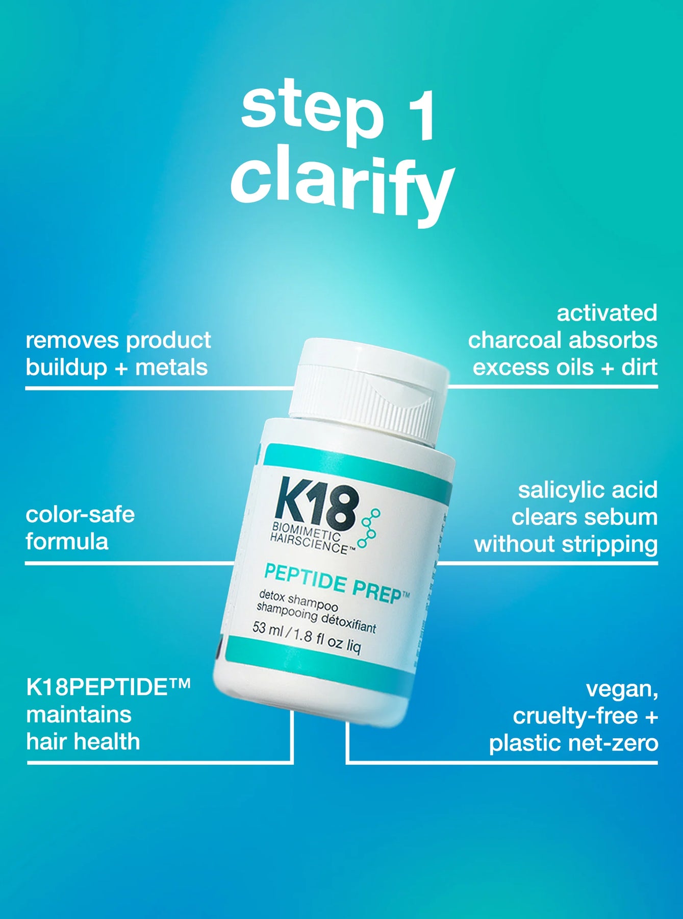 - Massage detox shampoo into hair + scalp to remove excess buildup.